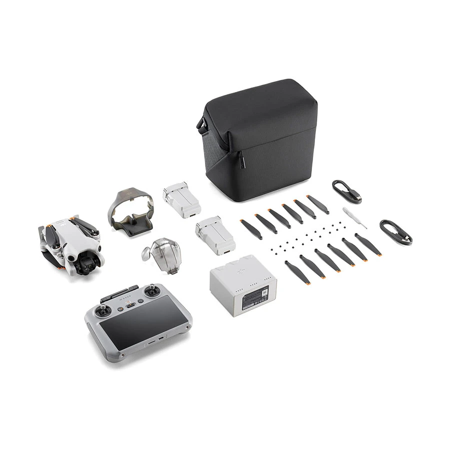 In The Box - DJI Mini 4 Pro drone - DJI RC 2 remote controller (5.5″ built‑in 1080p display) - 3× Intelligent Flight Battery Plus (each providing up to 45 min flight time) - 3× pairs of spare propellers - Two‑Way Charging Hub (charges three batteries sequentially, also functions as a power bank) - USB‑C to USB‑C PD cable & standard USB‑C cable - Shoulder/carrying bag - Screwdriver - User manual